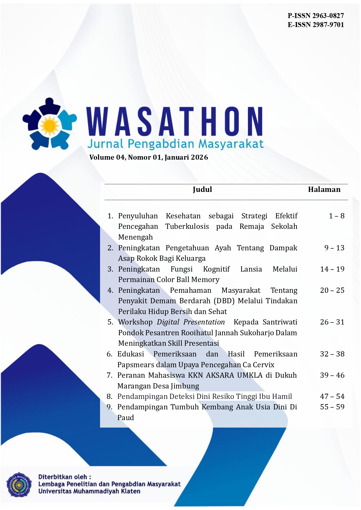 To improve the quality of publications and the editing process in the WASATHON: Journal of Community Service, the editorial board has decided to change the publication frequency for each volume from four times a year (January, April, July, and October) to two times a year (January and July). This change will take effect starting from Volume 3, January 2025.